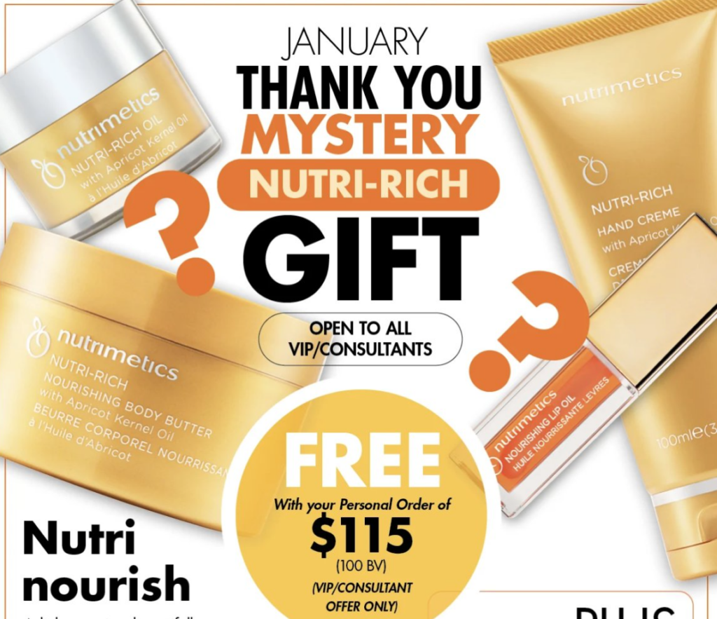 In December/January you joined under me as a Nutrimetics VIP and you were automatically popped in the draw to win $100.